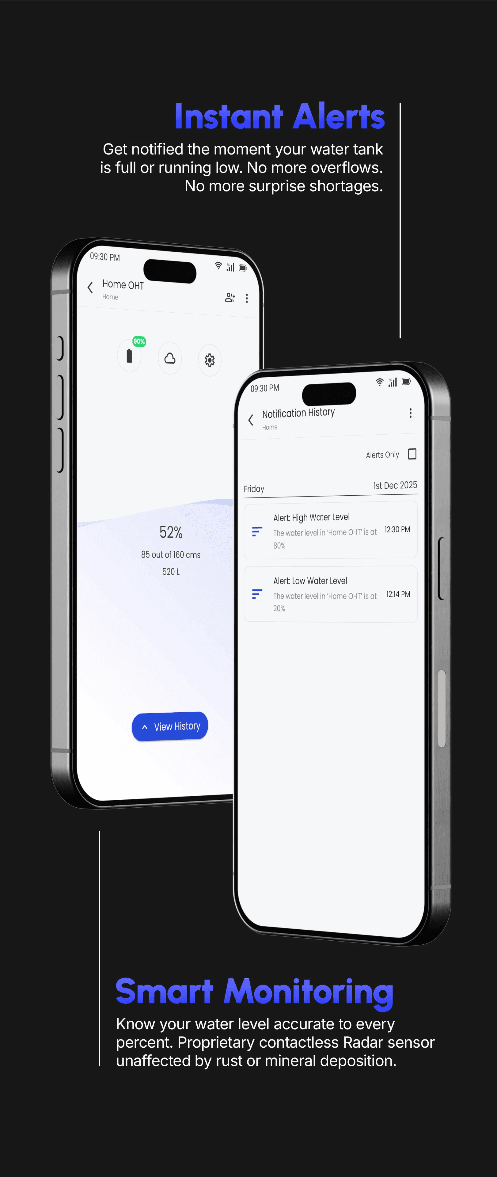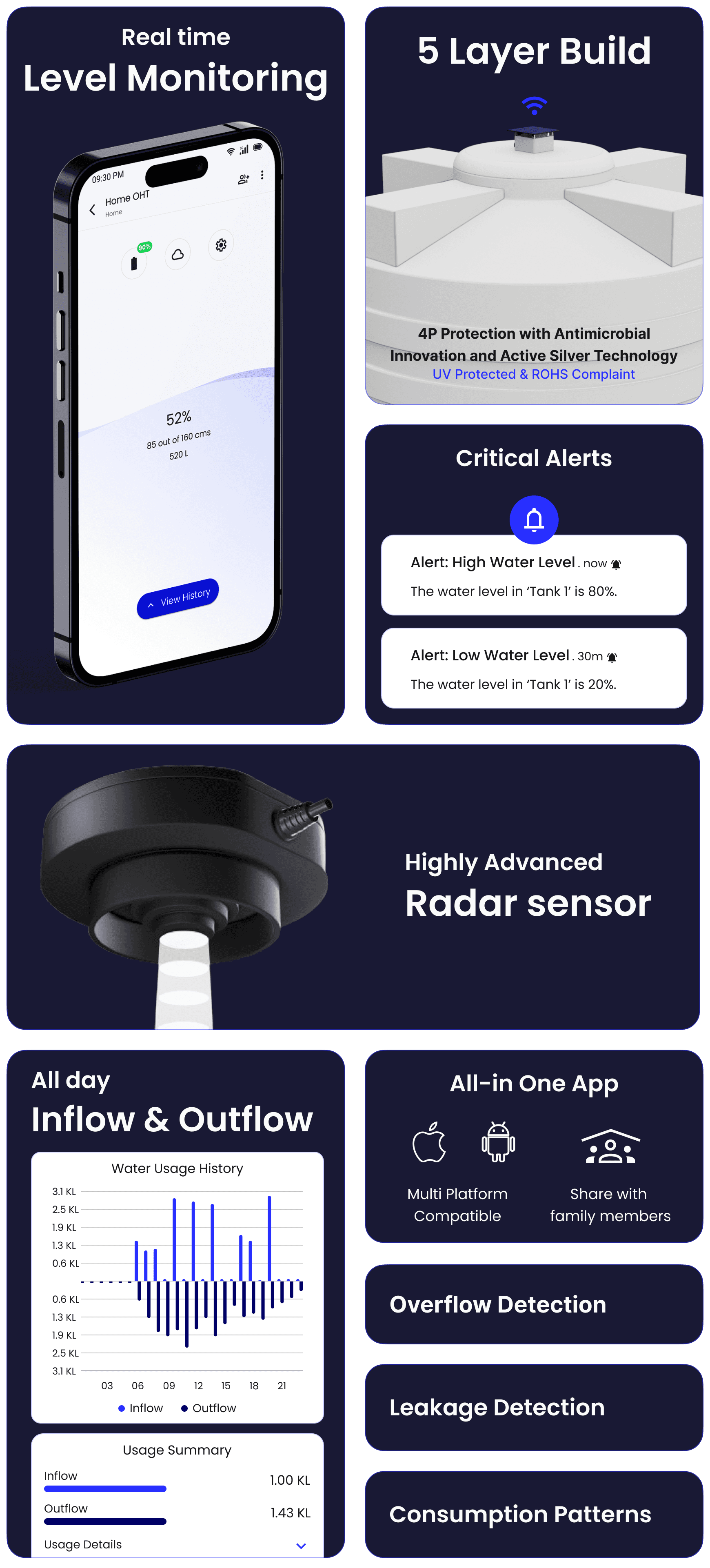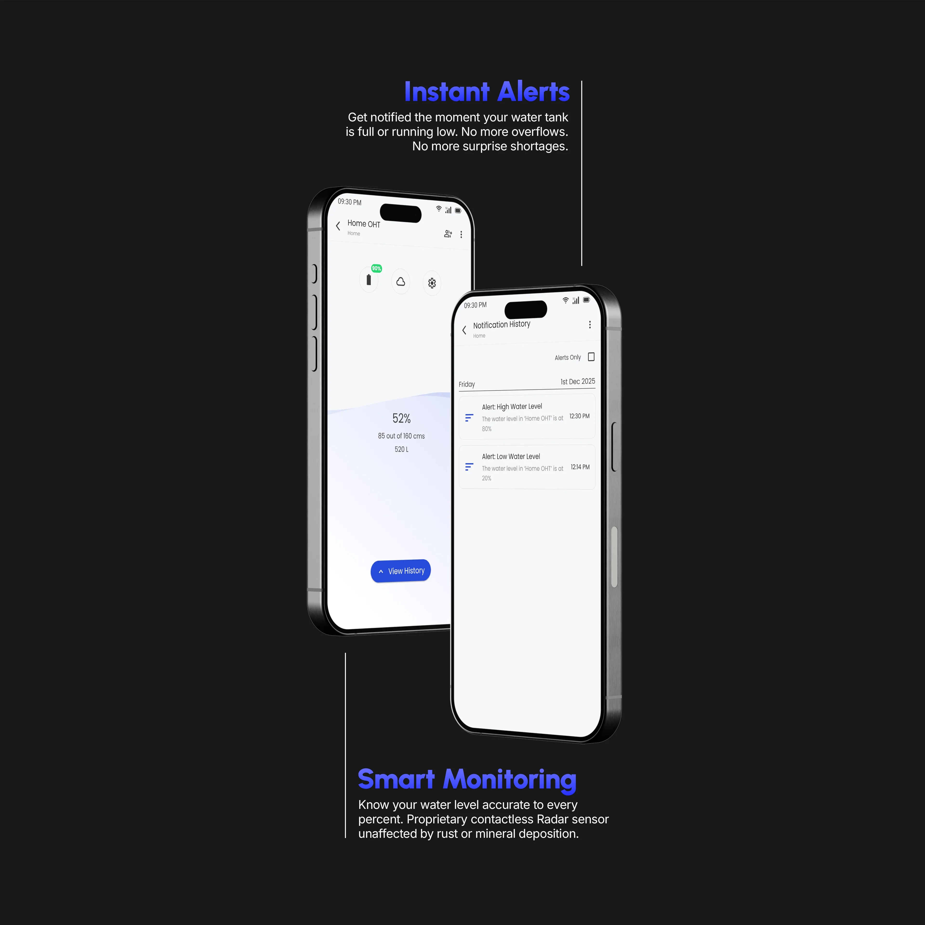 Best in quality tank comes ready with a seamlessly integrated smart module. No separate setup. No messy wiring. Just install the tank, connect it once, and you’re ready to use the tank and monitor water levels instantly through the app.